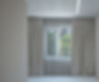 ينعكس السقف الأبيض الممتد في غرفة الأطفال مع ستارة مخفية وخطوط تشويه